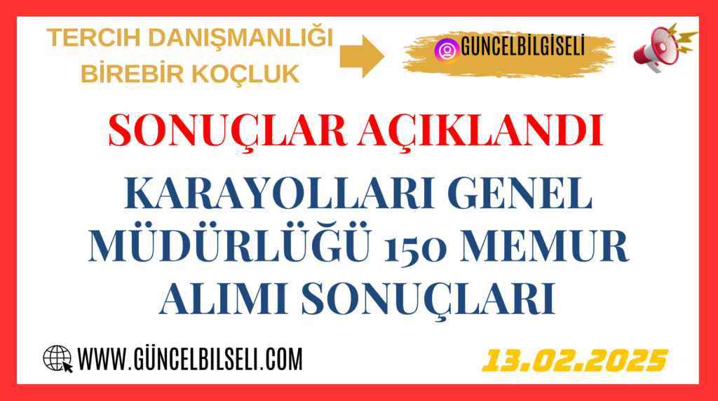 KARAYOLLARI GENEL MÜDÜRLÜĞÜ 150 SÖZLEŞMELİ PERSONEL ALIM SONUÇLARI AÇIKLANDI !