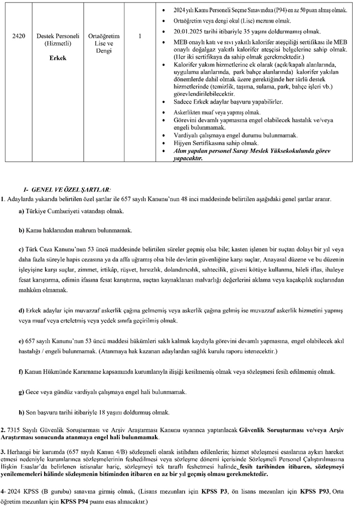 BAŞVURU TARİHİ: 6 OCAK – 20 OCAK