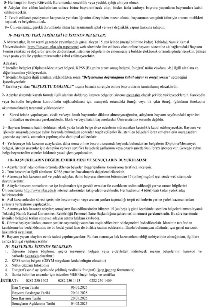 Tekirdağ Namık Kemal Üniversitesi mülakatsız 50 sözleşmeli personel alınacaktır. İşte detaylar…